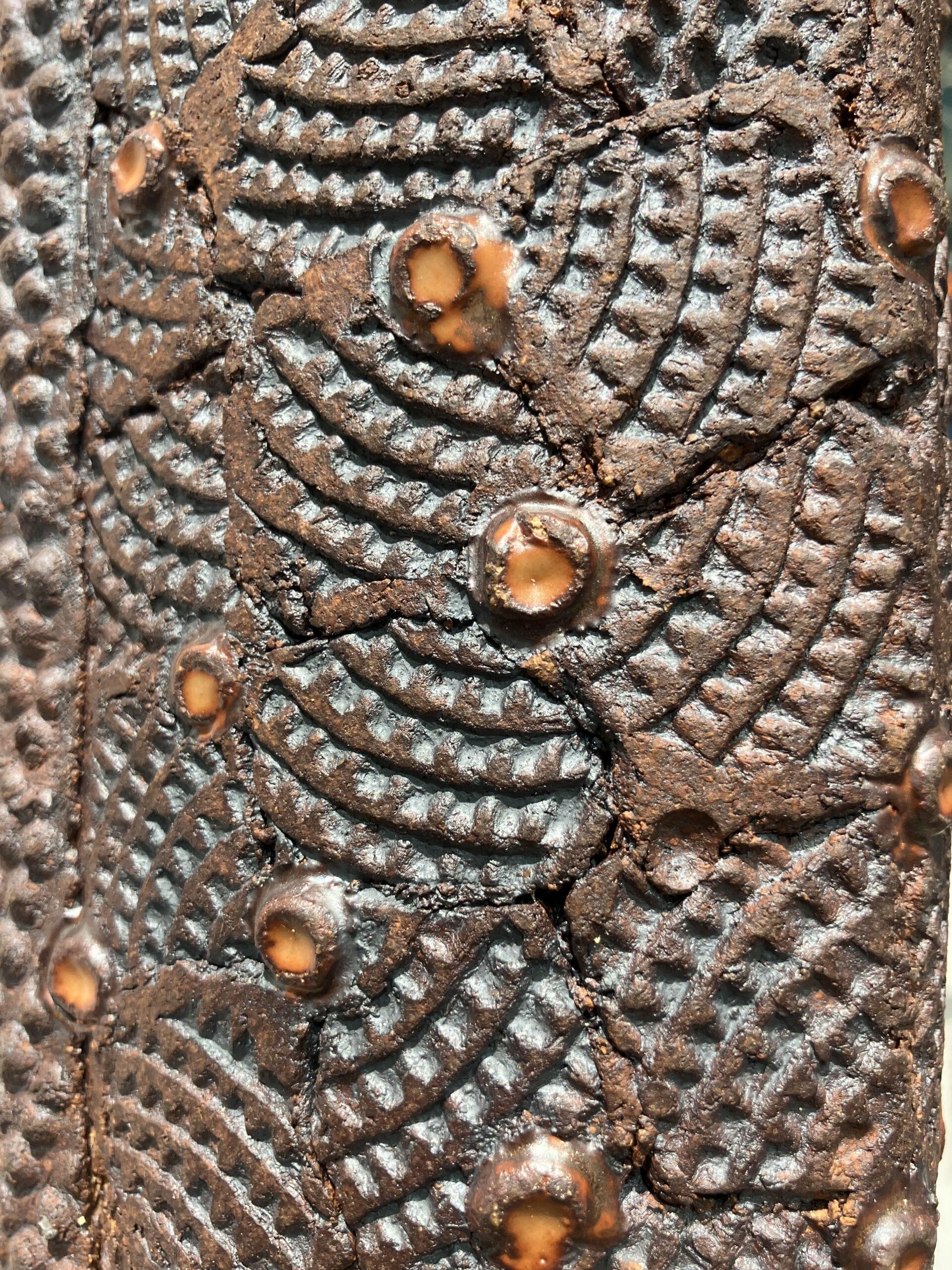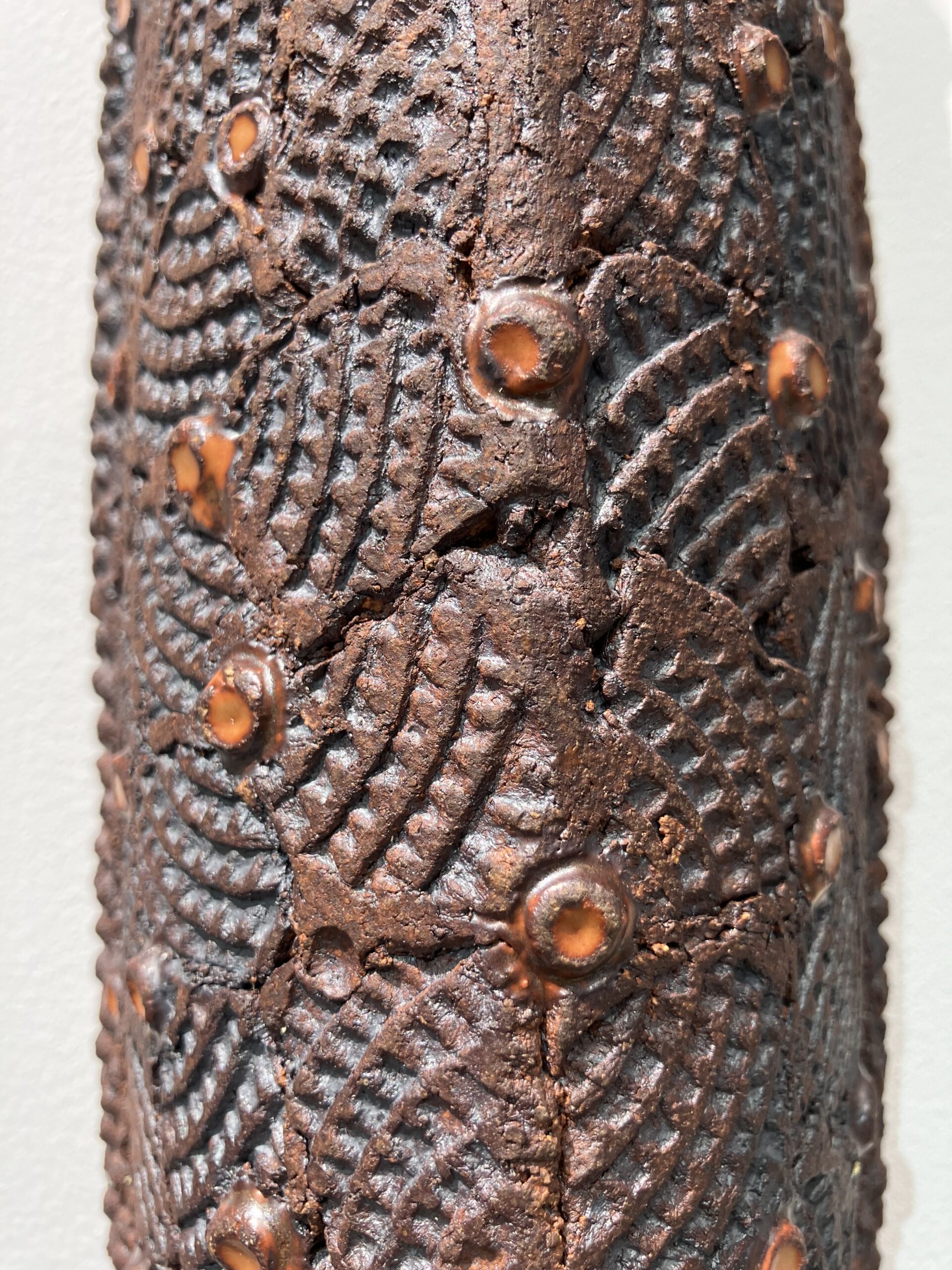 Grès chamotté gravé, émail et patine. Cuisson réductrice à 1280°