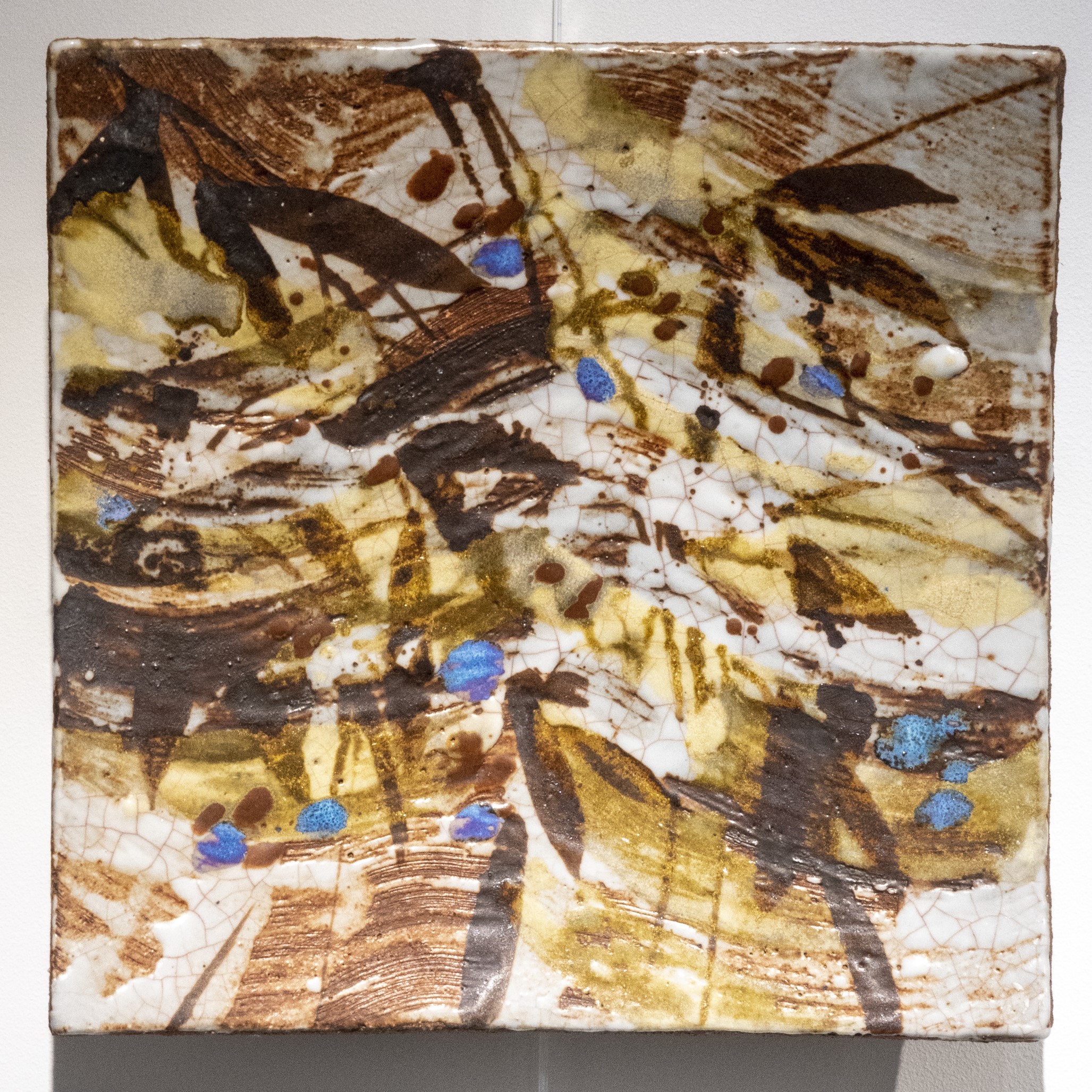 Grès chamotté gravé. Emaux superposés et patine. Décors au pinceau. Réserves à la cire.